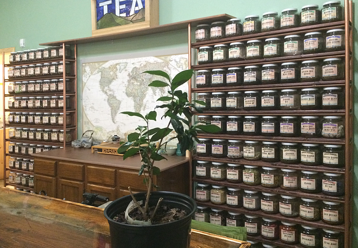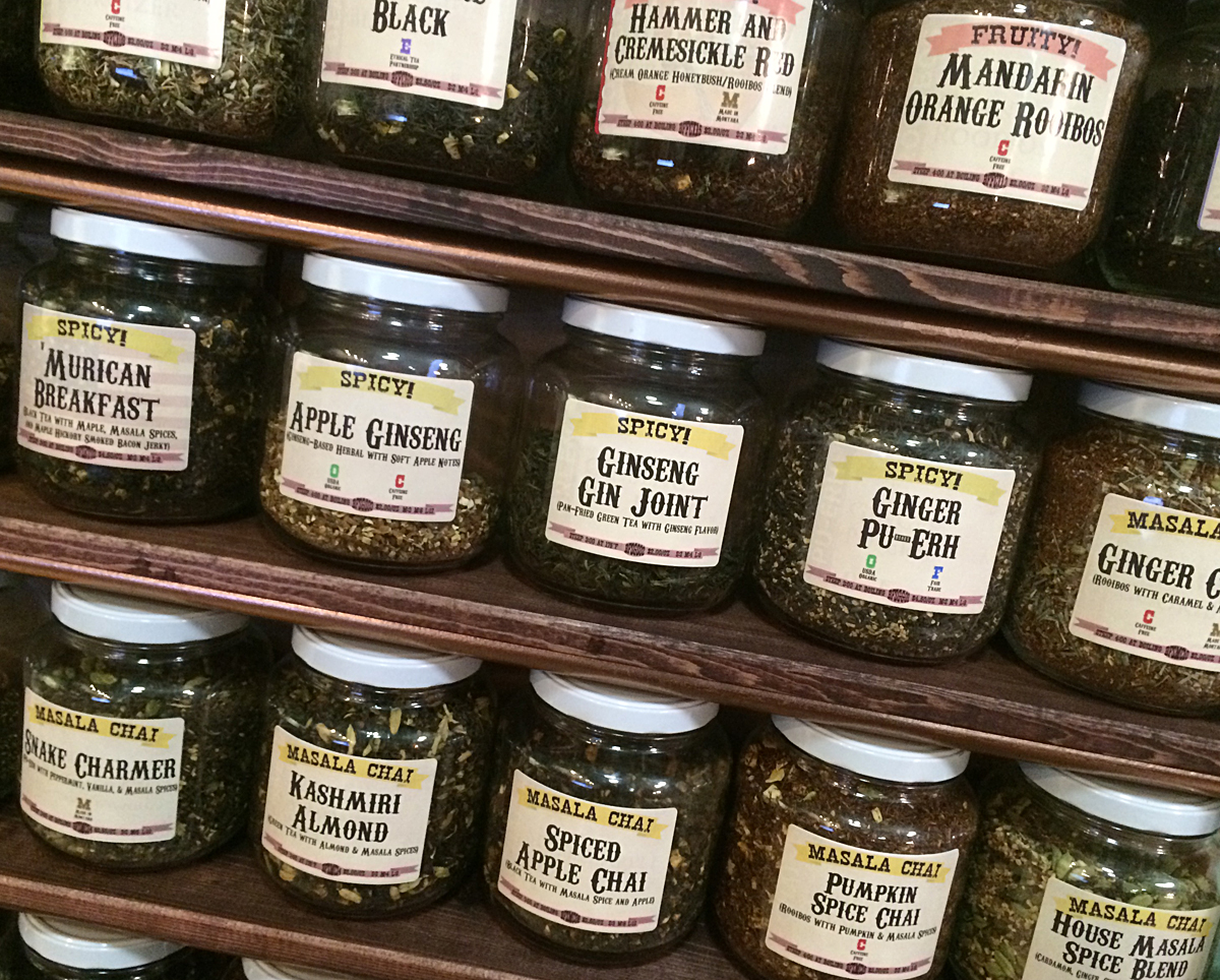 We went through our stock and found that if we grouped the herbs and tisanes (e.g., rooibos, yerba maté, guayusa…) with the straight tea, very close to half of our blends were flavored. So we arranged everything so that if someone says they’re looking for straight tea we take them to one side of the bar, and if they’re looking for something flavored, we go to the other.