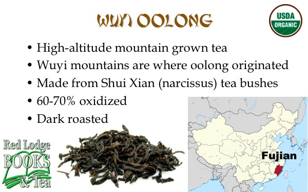 We then moved to the birthplace of oolong tea: the Wuyi mountains in the Fujian province of China. This tea is highly oxidized and then roasted to give a very full-flavored cup. We tasted it on the first stop (China) of our World Tea Tasting Tour, making this the first tea that’s been in two different tastings.