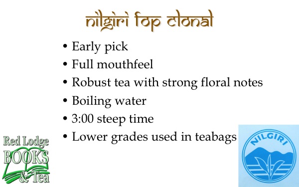 India: the world’s second-largest producer of tea. Our third stop on the tasting tour explored the world of Indian estate teas, focusing on three large and well-known tea regions in the country: Darjeeling, Assam, and Nilgiri. Red Lodge Books & Tea imports directly from estates in Darjeeling and Assam. We compared single-source estate teas (think single-malt Scotch) from Glenburn, Khongea, and Tiger Hill estates to a blended 2nd-flush Darjeeling using tea from Marybong, Lingia, and Chamong estates.
